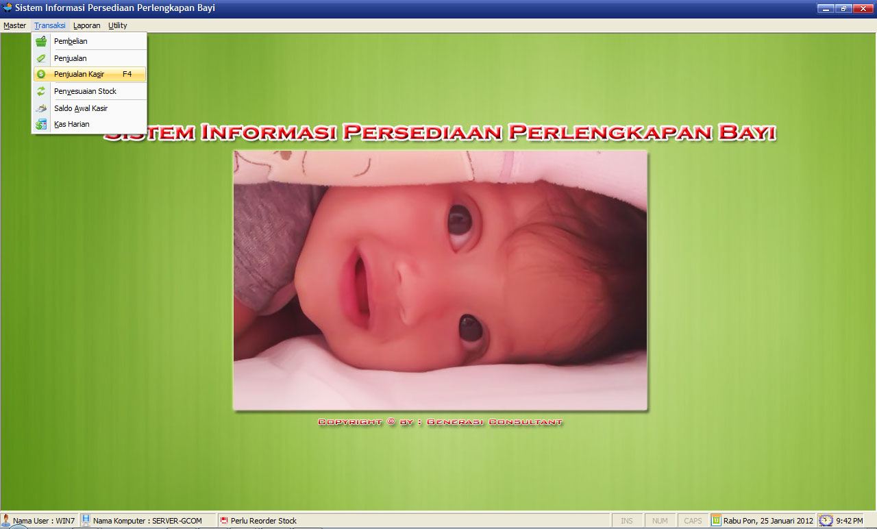 Aplikasi Persediaan Perlengkapan BayiDibaca: 2951 kaliProgram Aplikasi Persediaan Perlengkapan Bayi - Sangat cocok untuk distro bayi sebagai alat kontrol persediaan pakaian bayi Fitur Program Aplikasi Persediaan Perlengkapan Bayi :