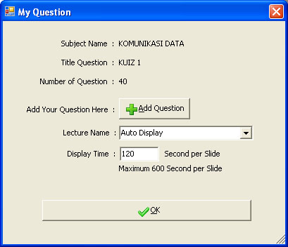Aplikasi Personal Response SystemDibaca: 3737 kaliProgram Aplikasi Personal Response System - Program Aplikasi Personal Response System ini sangat mirip dengan metode Clickers in The Classroom, cocok sebagai alat bantu bidang pendidikan. Fitur Program Aplikasi Personal Response System :