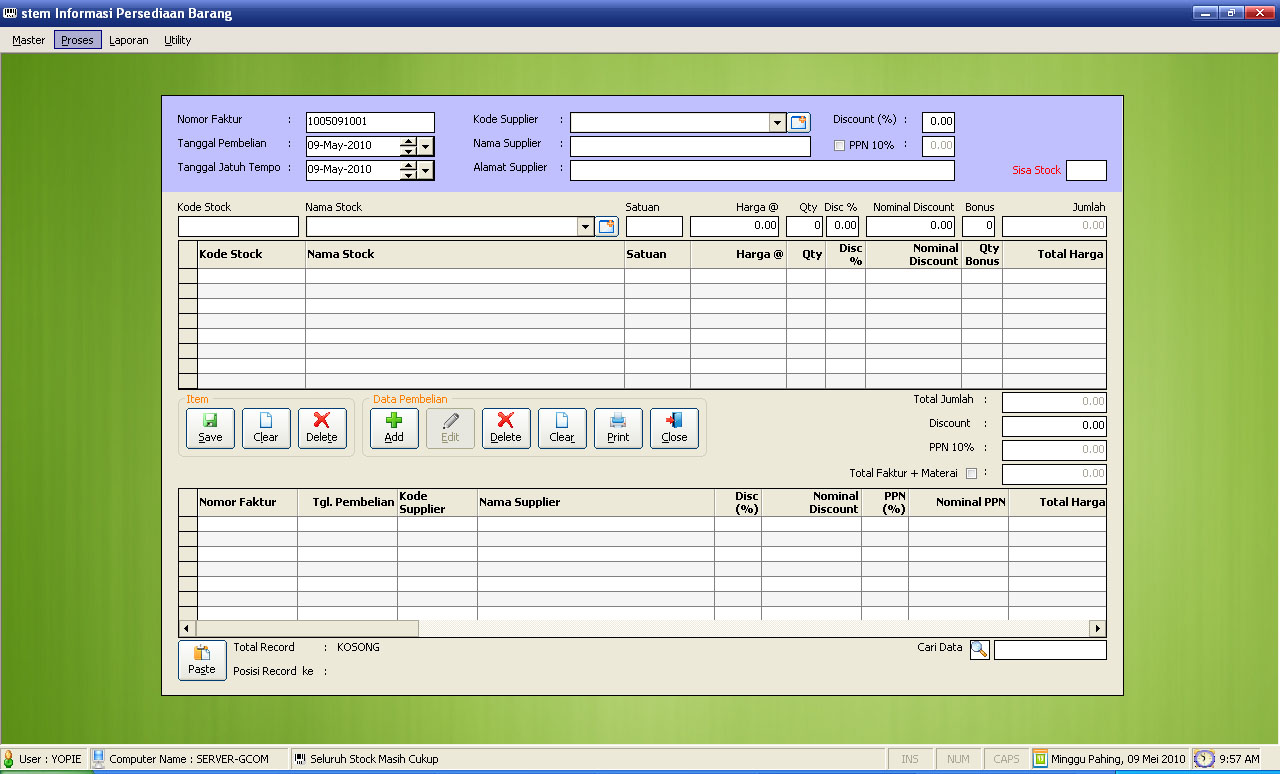 Aplikasi Toko SederhanaDibaca: 3223 kaliProgram Aplikasi Toko Sederhana - Sangat cocok alat kontrol persediaan barang toko, grosir dan usaha lainnya Fitur Program Aplikasi Toko Sederhana :