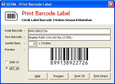 Aplikasi Cetak Barcode Label 3 Kolom Dengan CaptionDibaca: 4959 kaliSoftware Program Aplikasi Cetak Barcode Label - aplikasi cetak barcode pada label 3 kolom dengan caption nama produk dan harga. Silahkan hubungi kami di 08126514562 Fitur Program Aplikasi Cetak Barcode Label 3 Kolom Dengan Caption :