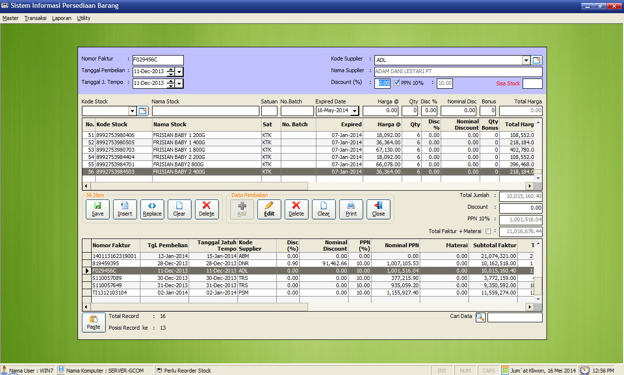 Aplikasi Persediaan Barang DaganganDibaca: 3199 kaliProgram Aplikasi Persediaan Barang Dagangan - aplikasi persediaan barang dagangan, mulai dari pembelian, retur beli, penjualan langsung (POS), retur jual, hutang, piutang dll. Support barcode reader dan foto produk dengan harga terjangkau dan sangat mudah digunakan. Silahkan hubungi kami di 08126514562 Fitur Program Aplikasi Persediaan Barang Dagangan :