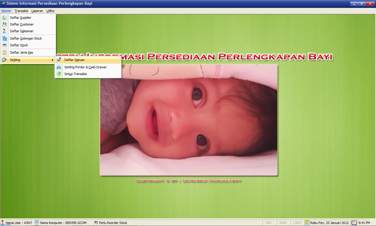 Aplikasi Persediaan Perlengkapan BayiDibaca: 2958 kaliProgram Aplikasi Persediaan Perlengkapan Bayi - Sangat cocok untuk distro bayi sebagai alat kontrol persediaan pakaian bayi Fitur Program Aplikasi Persediaan Perlengkapan Bayi :