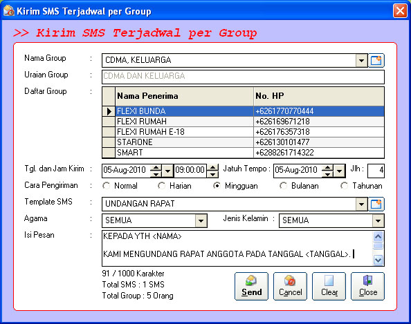 - Dapat Mengirim SMS Terjadwal (Personal dan Massal)