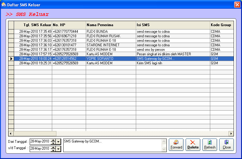 - Filter Data SMS Masuk/Keluar Berdasarkan Periode Tertentu