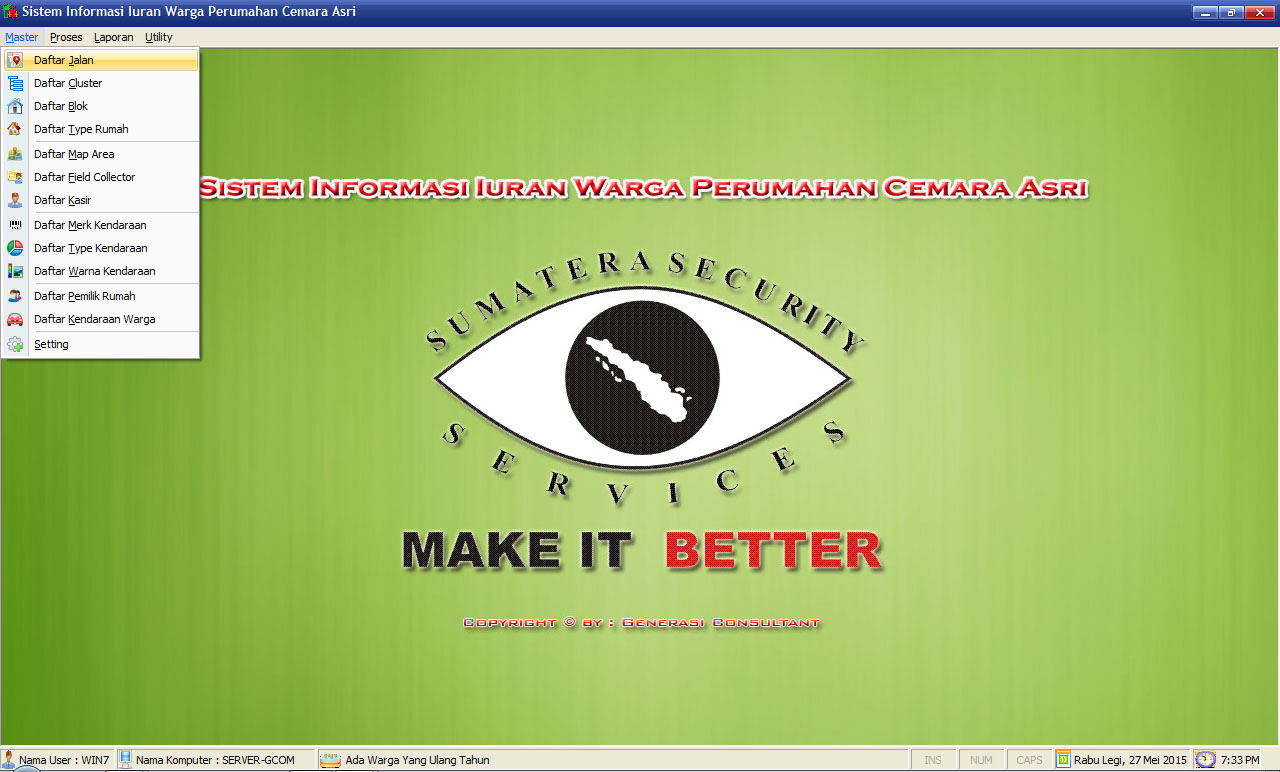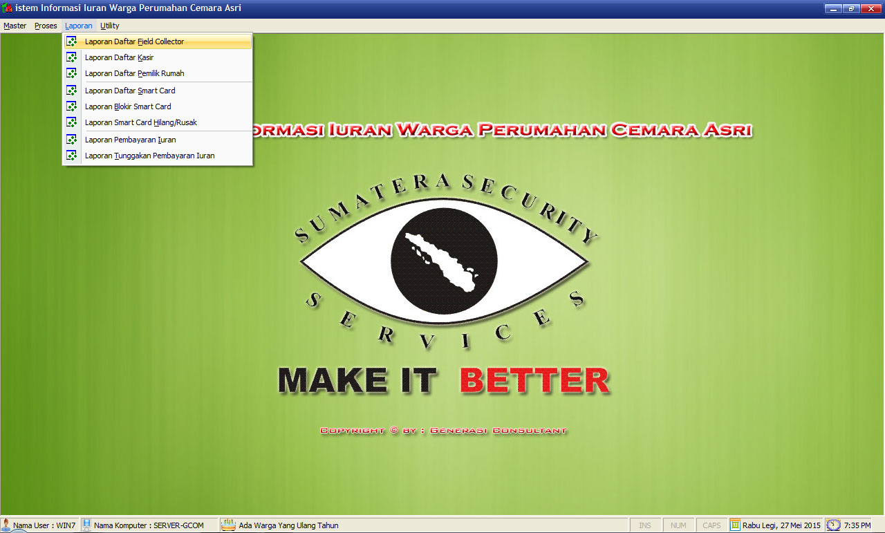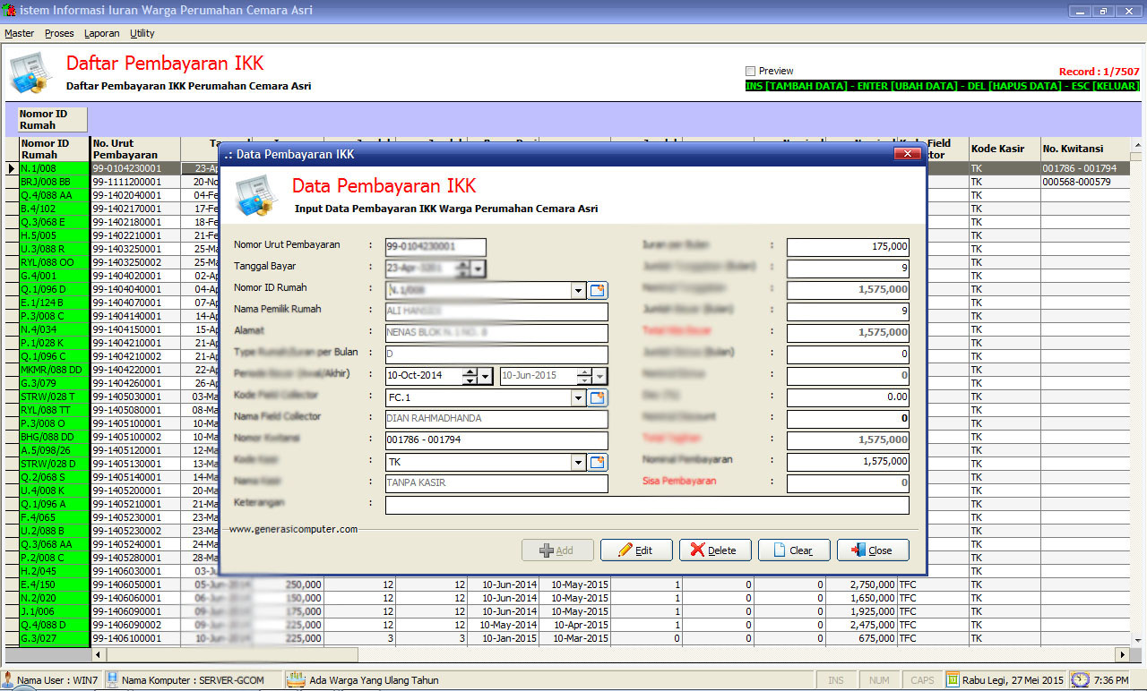 Program Aplikasi Iuran Warga PerumahanDibaca: 9043 kaliProgram Aplikasi Iuran Warga Perumahan - aplikasi iuran warga perumahan ini sangat cocok untuk pengurus perumahan yang kesulitan dalam memonitor pembayaran iuran dari masing-masing warga. Aplikasi sangat mudah digunakan. Silahkan hubungi kami di 08126514562 Fitur Program Program Aplikasi Iuran Warga Perumahan :