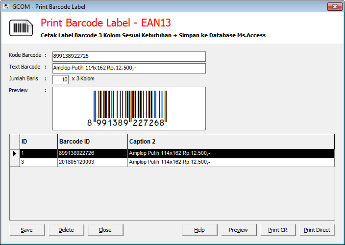 Source Code Aplikasi Cetak Label Barcode EAN13 Dengan VB6 + Ms.AccessDibaca: 2704 kaliSource Code Aplikasi Cetak Barcode Label - source code aplikasi cetak barcode EAN13 pada label 3 kolom dengan caption nama produk dan harga. Silahkan hubungi kami di 08126514562 Fitur Program Source Code Aplikasi Cetak Label Barcode EAN13 Dengan VB6 + Ms.Access :