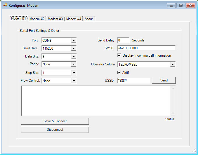Source Code SMS Gateway VB.NET GoldDibaca: 4549 kaliKami juga menjual paket source code SMS Gateway VB.NET siap pakai dengan harga murah: Fitur Program Source Code SMS Gateway VB.NET Gold : Fitur : SMS Personal, SMS per Group/Massal, SMS Personal Terjadwal, SMS per Group/Massal Terjadwal, Foward, Reply, Konfigurasi Multi Modem Auto Connect, Konfigurasi Auto Routing Prefix Provider, Konfigurasi Autorespon, Konfigurasi SMS Template, Support Delivery Report, Support USSD utk cek pulsa dll, Support Display The Incoming Call Information dll